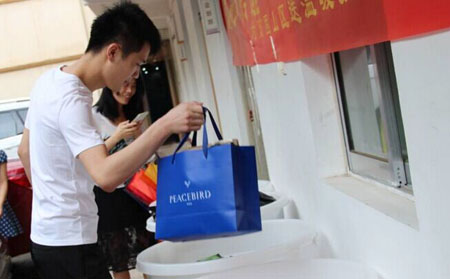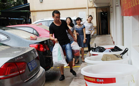 在活動開始前一周,醫(yī)院企劃部門就已制作相關(guān)公益宣傳片,你不再喜歡的,也許是他們較需要的,告知醫(yī)院員工愛心捐贈活動。8月8日7點20分,記者來到捐贈活動現(xiàn)場,看到在廣場上擺放5個愛心桶,員工們正排隊等待捐獻(xiàn)衣物等相關(guān)物品。