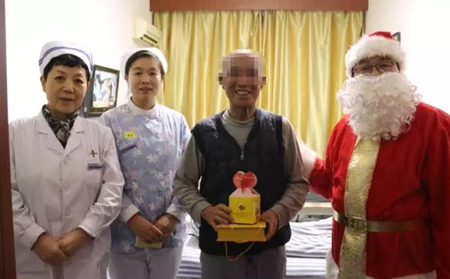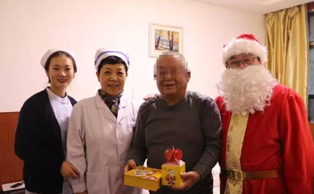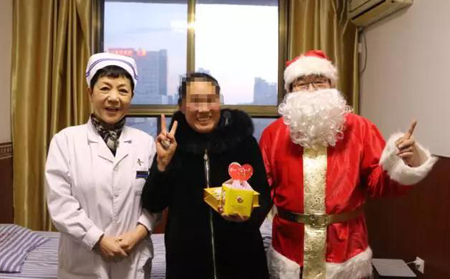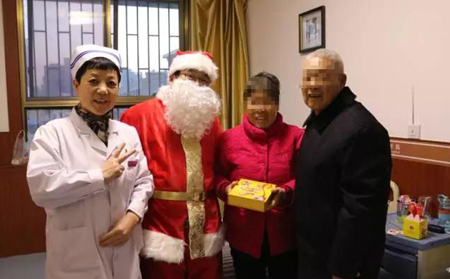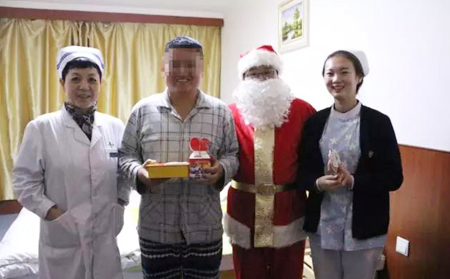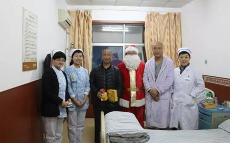 圣誕老爺爺和董主任每到一個病房,都引來一陣陣開心的笑聲:謝謝醫院這么關懷我們患者,這樣的活動非常好,其實在家也沒有過過圣誕節,也沒有收到這樣的禮物,在這里感覺到了溫暖,謝謝李院長,謝謝你們一位患者在接到圣誕禮物時高興的說!這讓院長和主任及醫護人員倍感欣慰。