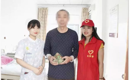 (收到粽子的患者很開心,與我們的護士合影留念)
