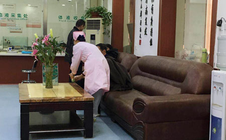(門診導醫為化驗過得患者倒水,送去暖心的關懷)