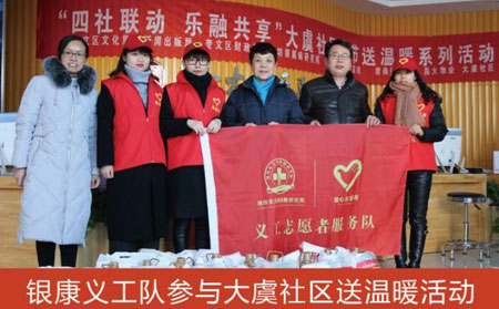 銀康義工隊深入到社區(qū)、農(nóng)村、敬老院等開展醫(yī)務(wù)救助,每月開展公益講座、為孤寡老人獻愛心等服務(wù),提升醫(yī)院服務(wù)品質(zhì),構(gòu)建和諧的醫(yī)患關(guān)系。